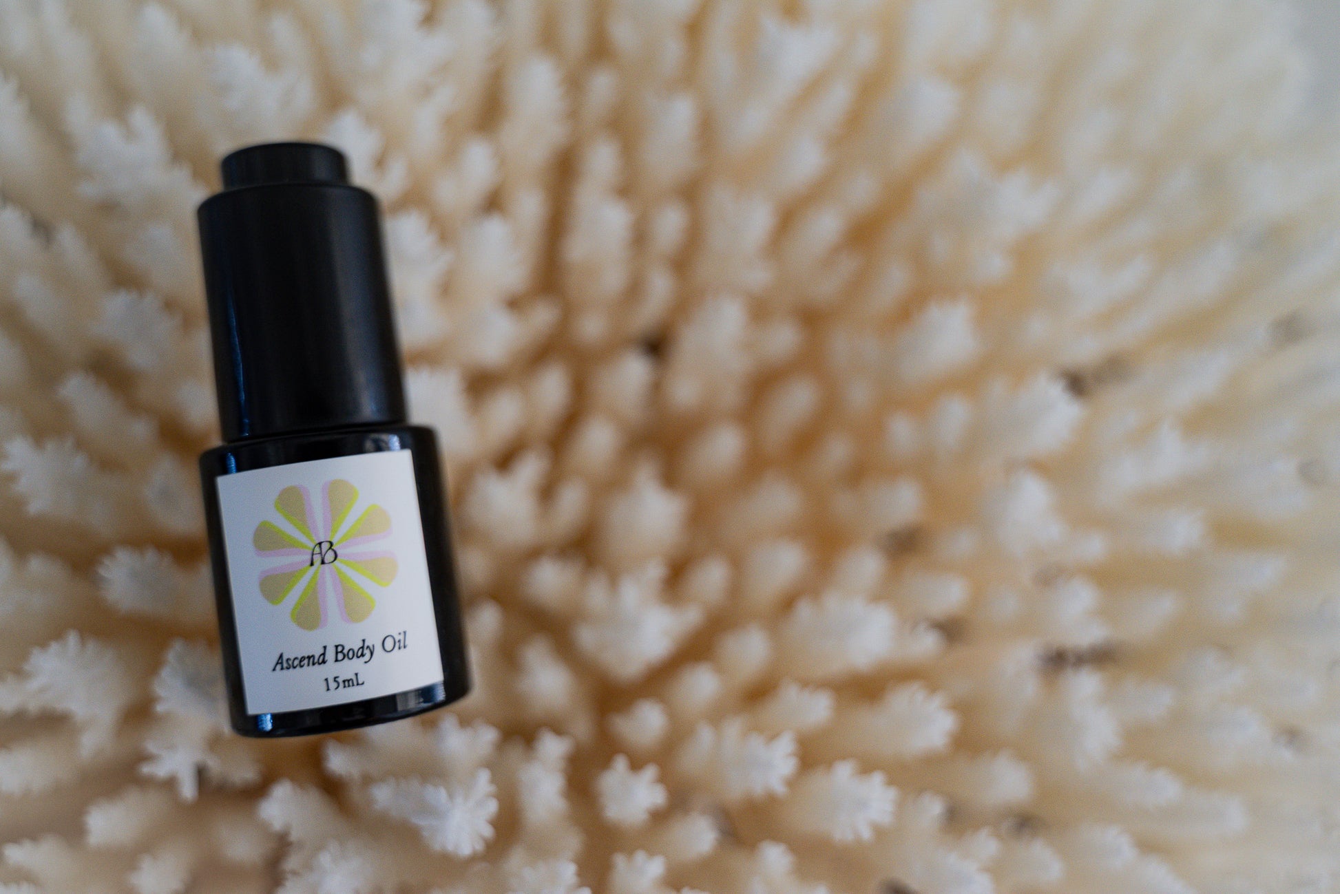 Ascend Body Oil brings a sense of elevation, well-being, and a connection to nature. It aligns with the kava’s ability to keep us grounded and open, while rosemary helps us to carry our body’s connection in alignment with our spirit.